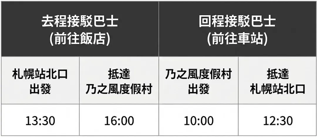 ■ JR札幌駅↔️乃之風渡假飯店(Nonokaze Resort)