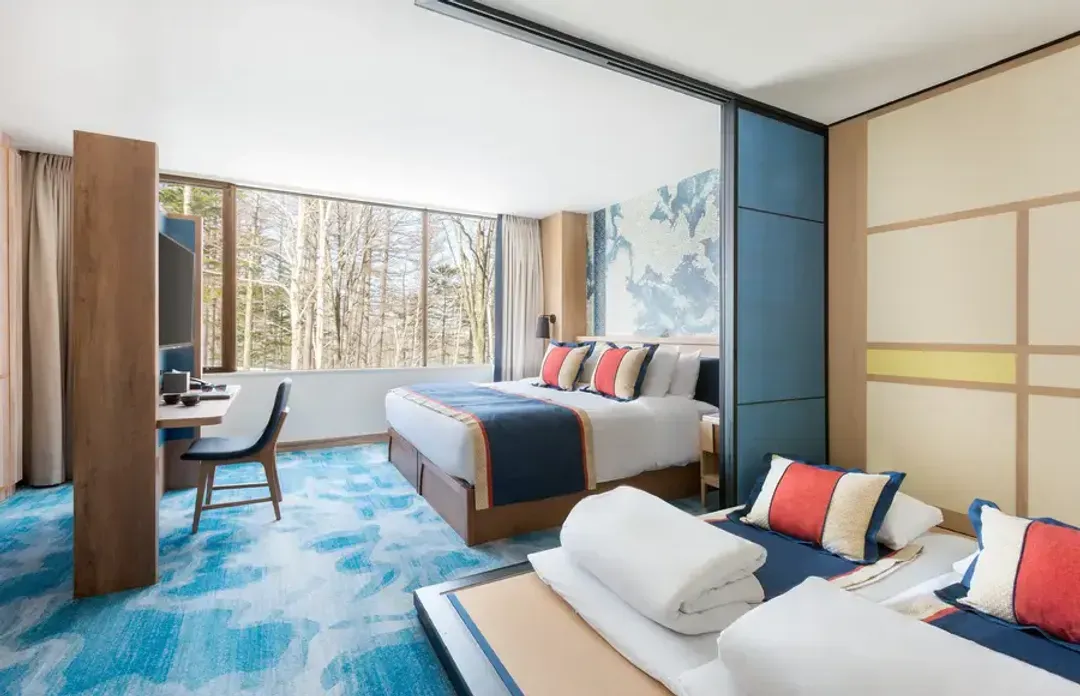 Club Med日本Sahoro北海道度假村,位在林樹茂密山坡腳下,提供3種不同日式房型選擇。