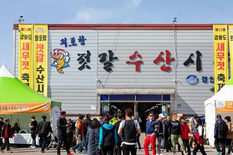 外浦港水產市場位於韓國仁川廣域市江華島的外浦港附近,是當地著名的海鮮市場。該市場以提供新鮮的海產品而聞名,吸引了眾多遊客和當地居民前來購買和品嚐。在這裡,您可以找到各種新鮮的魚類、貝類和其他海鮮,並在附近的餐廳享用現點現做的美食。