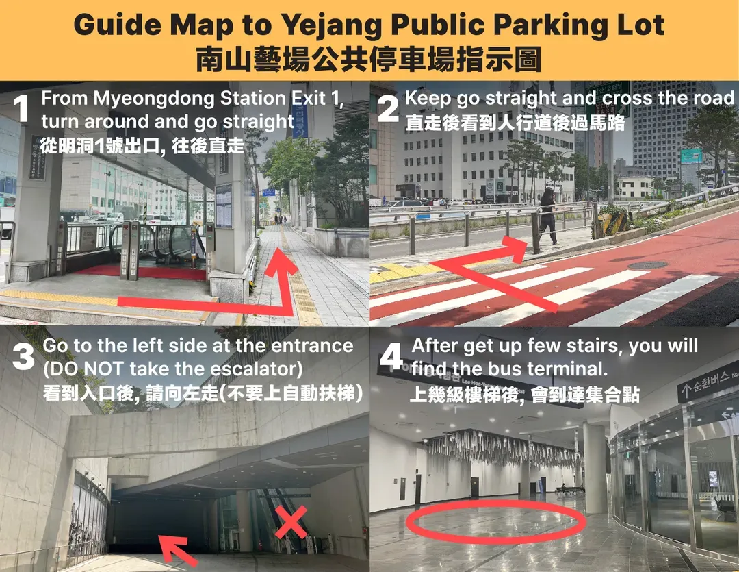 08:00 南山藝場公共停車場出發 (由明洞站1號出口步行約5分鐘)