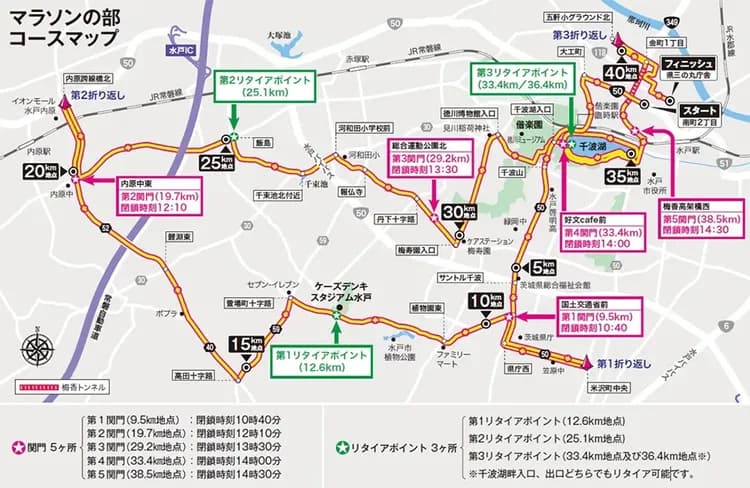 水戶黃門馬拉松的賽道設計往往會經過水戶市內的主要景點,包括水戶黃門的像和水戶公園等美麗的景觀。這不僅是一場馬拉松,也像是一次歷史與文化的旅行。