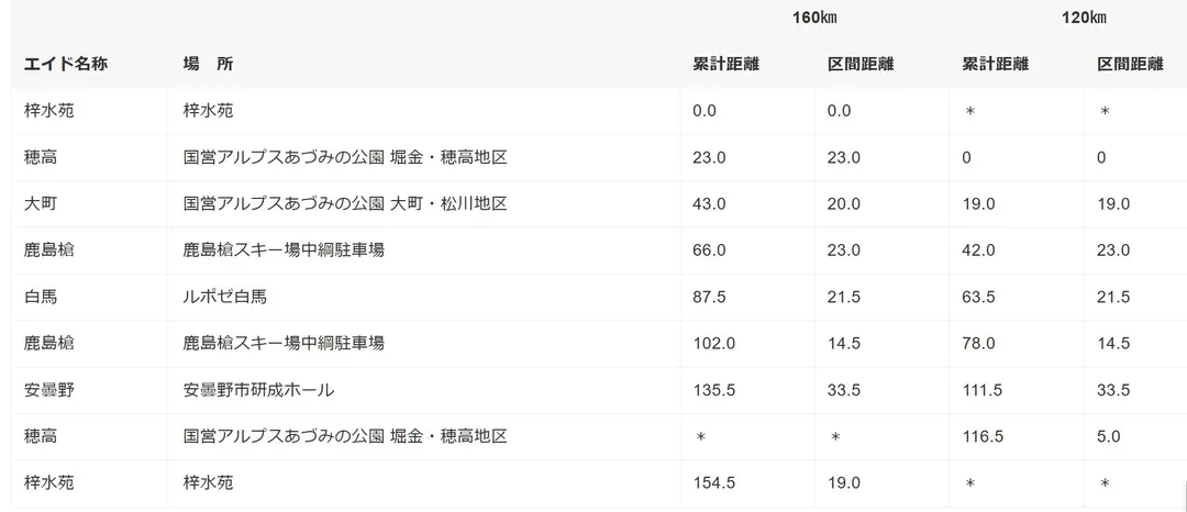 ① 160km 梓水苑 ⇔ 白馬