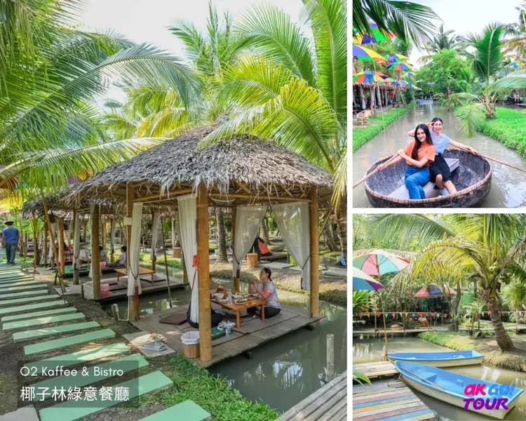 佛統府的O2 Kaffee & Bistro原本是一座椰子園,用來灌溉和運輸椰子的水道被改造成用餐區,遊客可以一邊享用美食,一邊欣賞椰林田園風光。