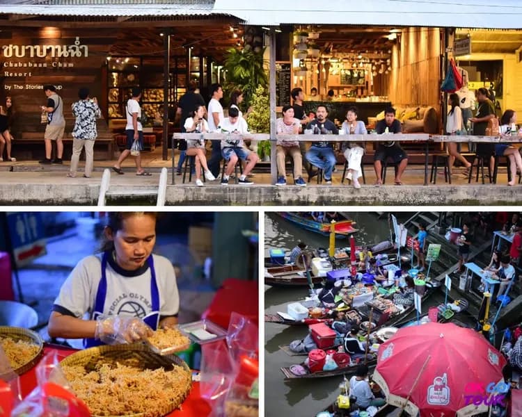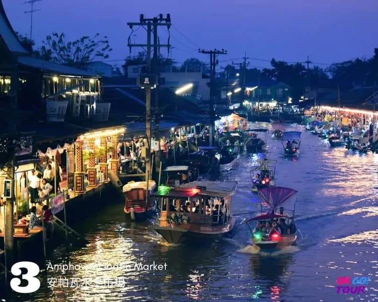 安帕瓦水上市場座落於湄公河畔,擁有融合泰式與中式風格的建築群,河畔仍保留許多百年歷史的建築,是曼谷外圍最受歡迎的黃昏市場之一。