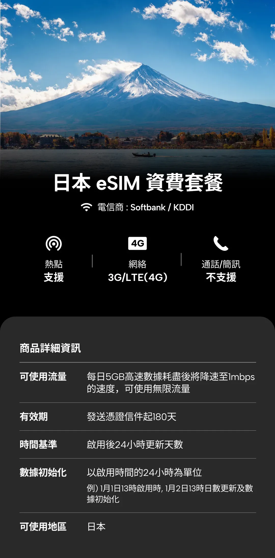 ★若因地震、颱風等不可抗力因素,無法辦理退款,敬請理解。(eSIM的效期自寄發憑證信起開始計算有180天,可保留於下次使用)