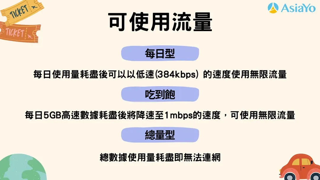 【吃到飽】每日5GB高速數據耗盡後將降速至1mbps的速度,可使用無限流量