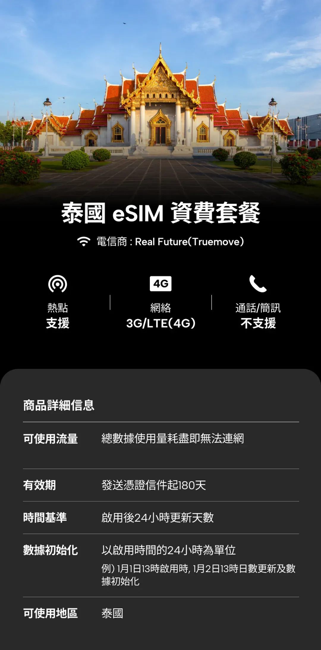 ★若因地震、颱風等不可抗力因素,無法辦理退款,敬請理解。(eSIM的效期自寄發憑證信起開始計算有180天,可保留於下次使用)