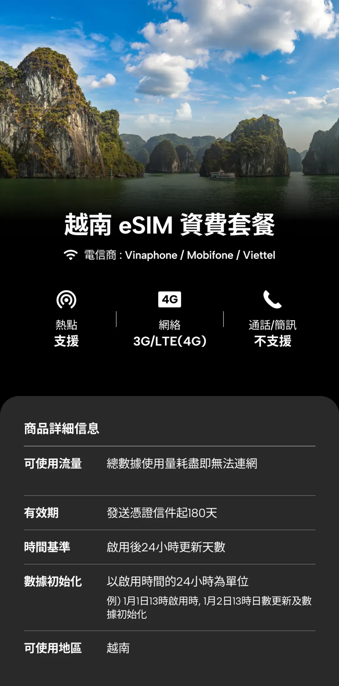 ★若因地震、颱風等不可抗力因素,無法辦理退款,敬請理解。(eSIM的效期自寄發憑證信起開始計算有180天,可保留於下次使用)