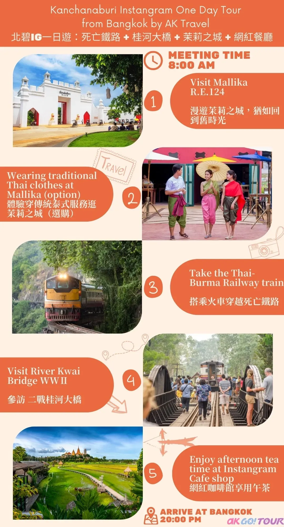 - 不包含:導遊與司機小費、餐費、泰服體驗 ( 選購 ) 、下午茶、個人花費。