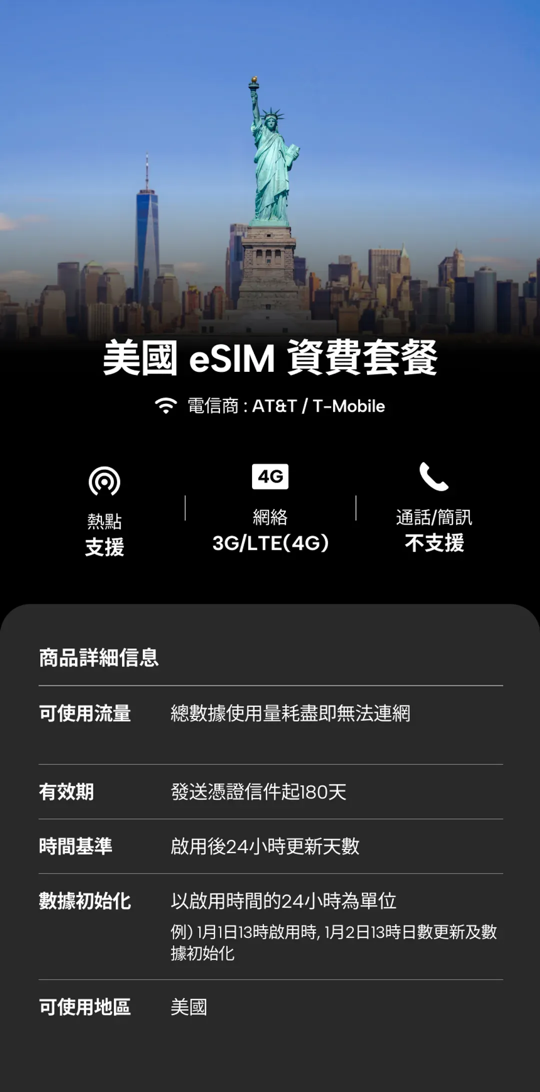 - 刪除即失效: 如果您在旅途中手動將 eSIM 方案從手機中「刪除」,或將手機「恢復原廠設定」,該 eSIM 將永久失效且無法找回。