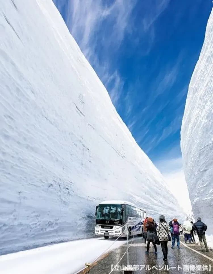 連接富山與長野的高山觀光路線,能看到雪之大谷、壯觀水壩和高山景色。春夏走雪牆、秋天賞楓,都很受歡迎。