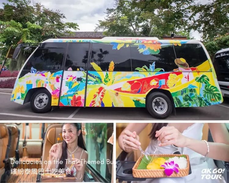 這次搭的是超有特色的泰式繽紛小巴!車內空間寬敞、座位舒適,還能在車上享用米其林級美食!
