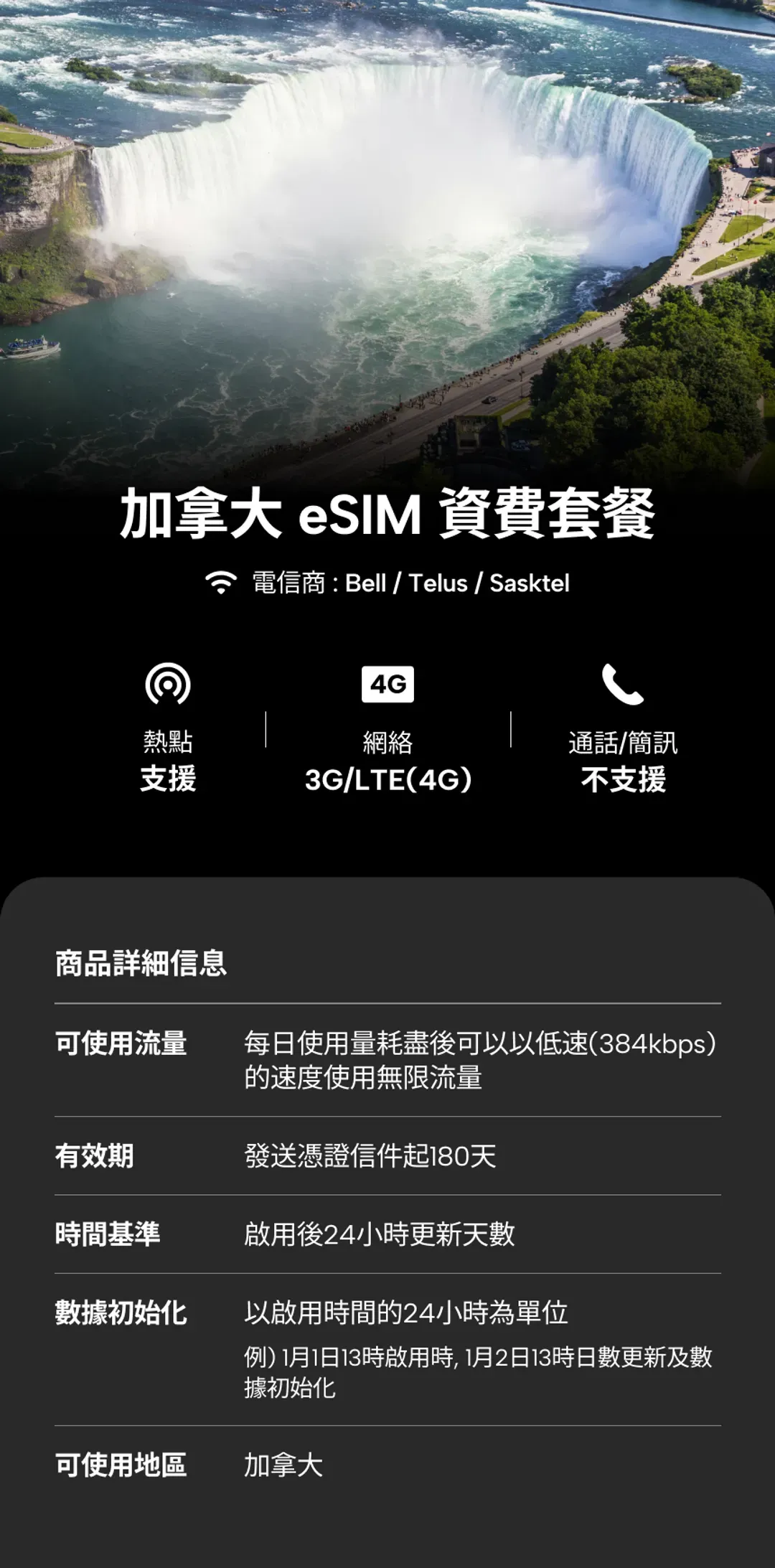 - 本卡實際訊號及連線速度會受地區、地形、氣候、建物遮蔽、使用人數、網路系統或終端設備等因素影響而有所差異,如當地或手機無法支援 4G 網路時,將自動轉為 3G 訊號。 此外,設備所支援的頻段不同,網速也會有所不同,恕無法因少數地區之訊號狀況而要求退費。另因地震、颱風等不可抗力事件致使網路不穩、斷訊或無法使用等情形,亦不得要求退換貨。