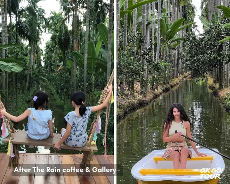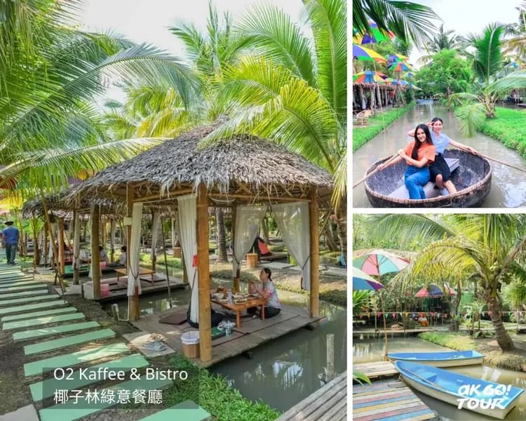 佛統府的O2 Kaffee & Bistro原本是一座椰子園,用來灌溉和運輸椰子的水道被改造成用餐區,遊客可以一邊享用美食,一邊欣賞椰林田園風光。