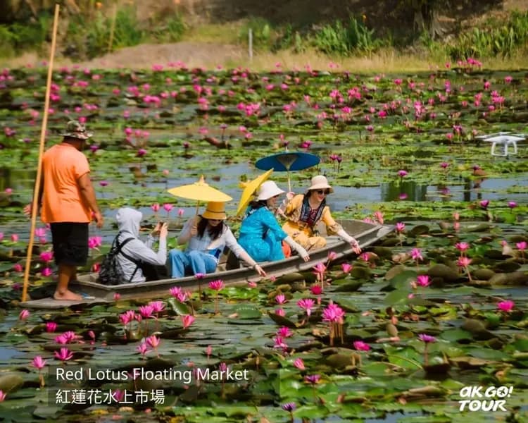 佛統府以豐富的歷史與文化底蘊聞名,其中紅蓮花水上市場更是不可錯過的亮點。由於當地公共交通較不便利,建議參加一日遊行程或包車前往,一路還能欣賞迷人的鄉村風光,輕鬆享受慢旅時光。