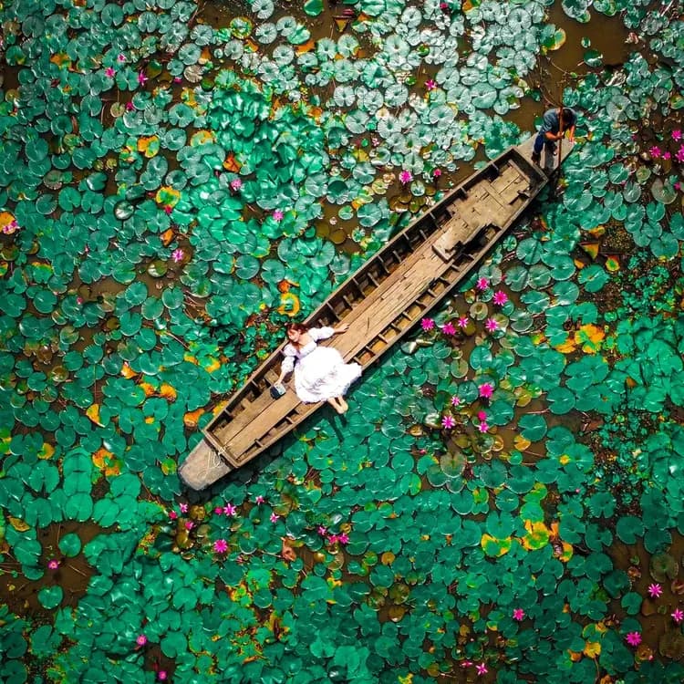 紅蓮花水塘盛開時,一整片粉嫩花海美得宛如夢境。遊客可搭乘小船悠遊其中,近距離欣賞盛開的紅蓮花,還能在湖中央拍照打卡。想要更震撼的畫面,也可加購空拍攝影服務,從高空90度俯拍,將整片花海之美一網打盡,絕對值得珍藏。