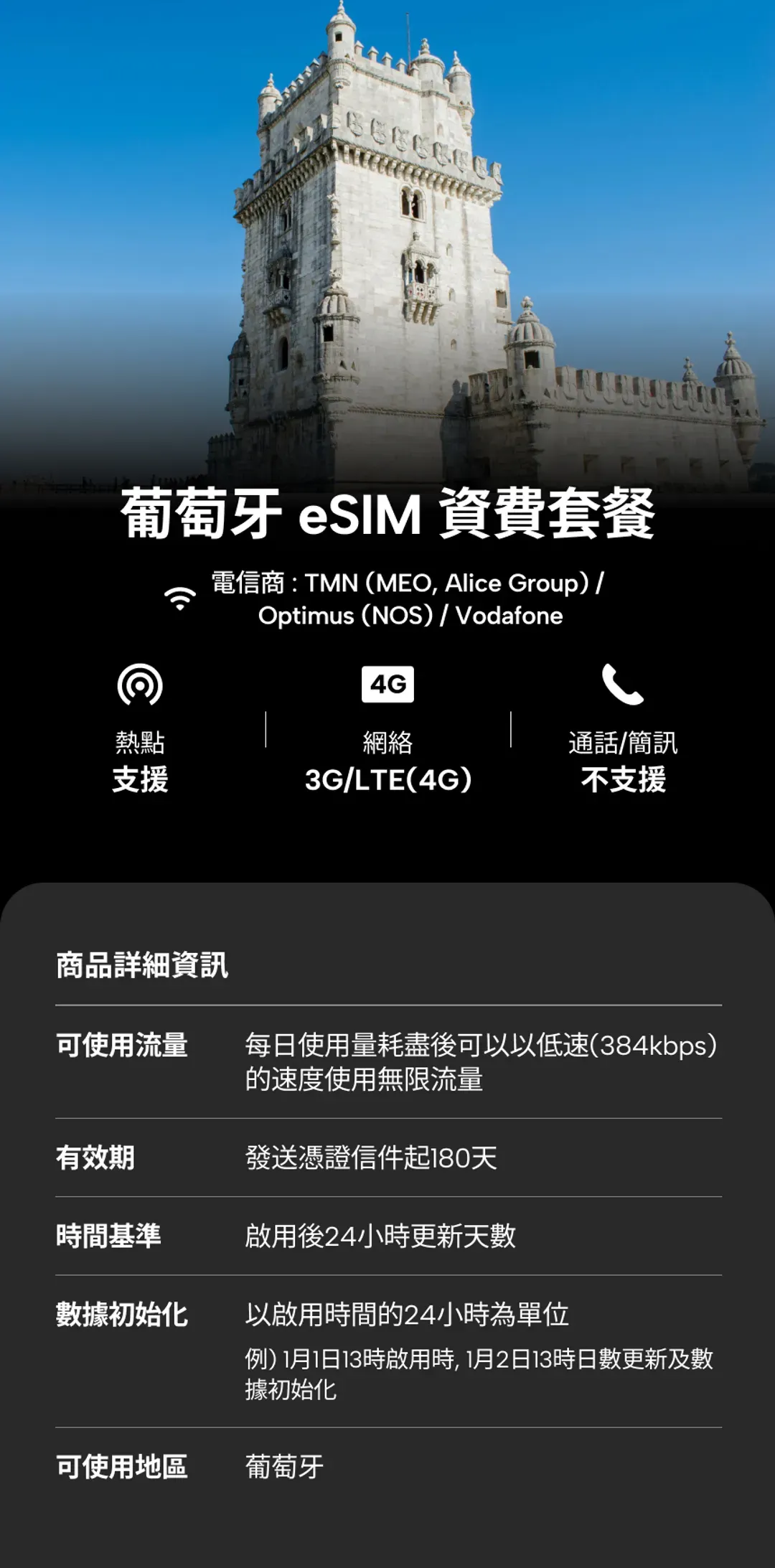 【使用效期】自發送eSIM憑證信件起,須於180天內啟用。