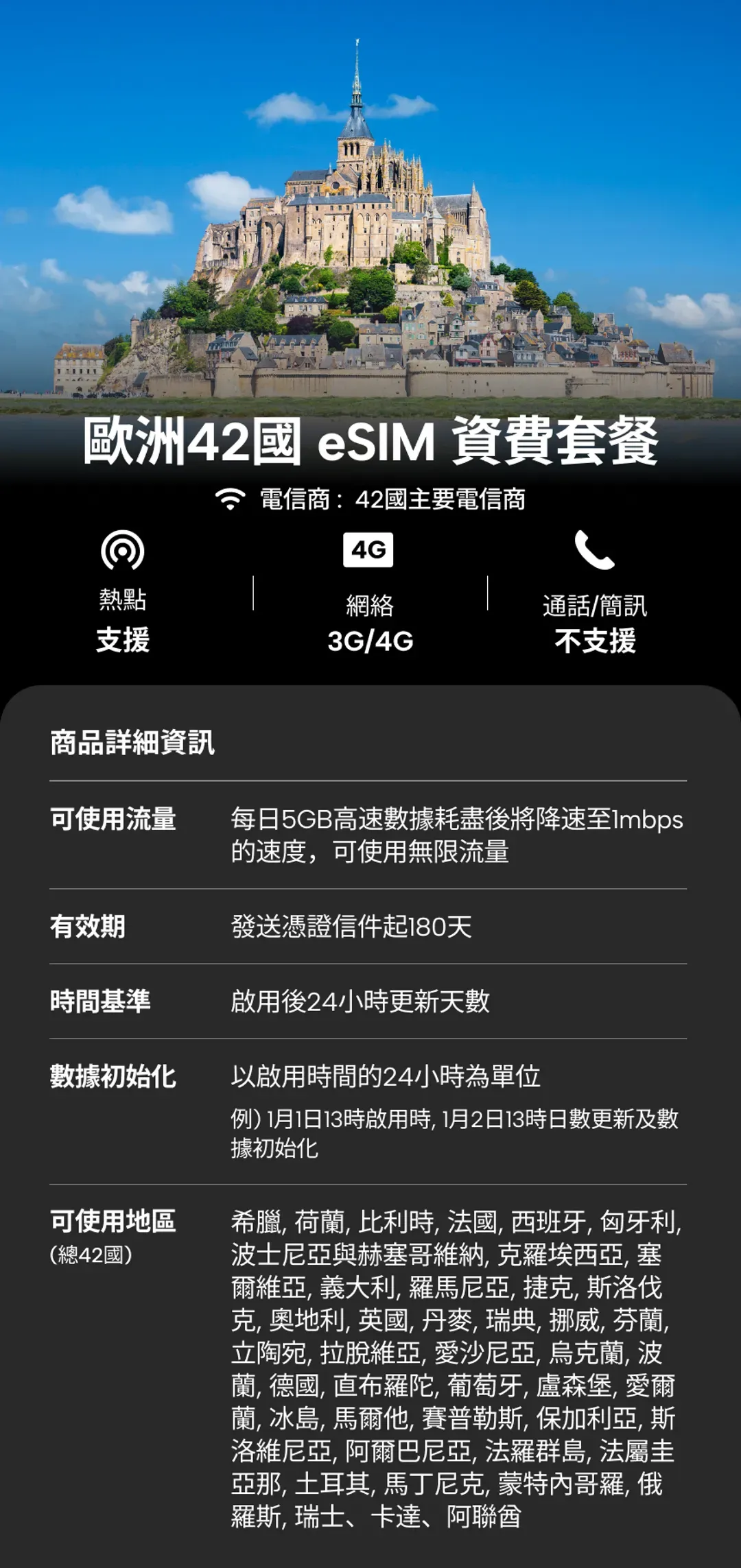 小提醒:歐洲許多飯店/咖啡廳Wi-Fi穩定,可以多加利用。但「吃到飽」方案通常有「公平使用原則」(FUP),例如每天高速流量達標後會降速,購買時請務必看清楚說明喔!