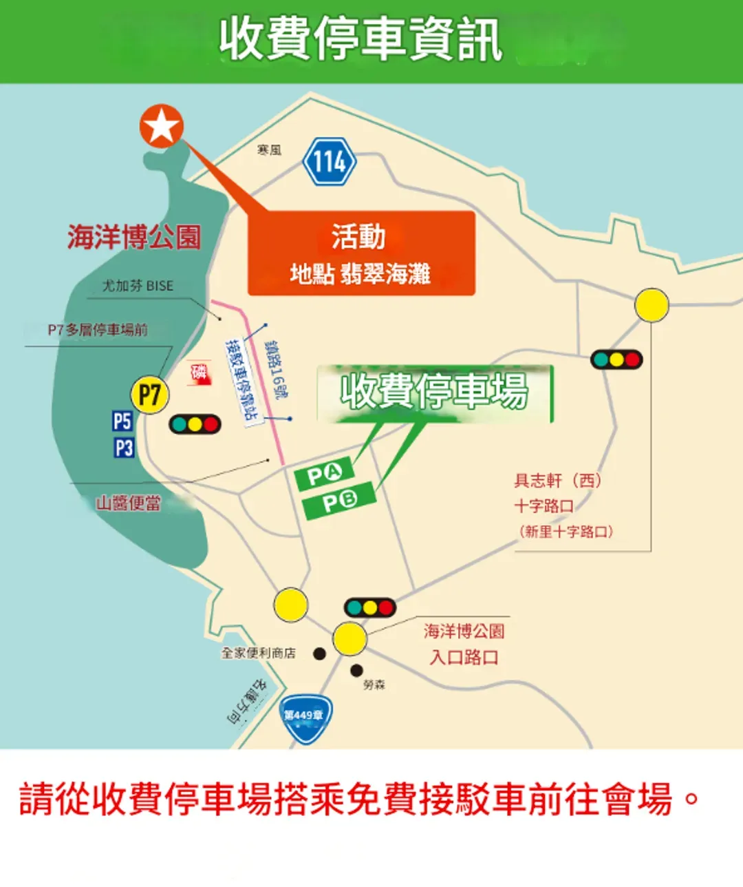 - 為了減少交通擁堵,請盡可能考慮共乘。謝謝您的合作。
