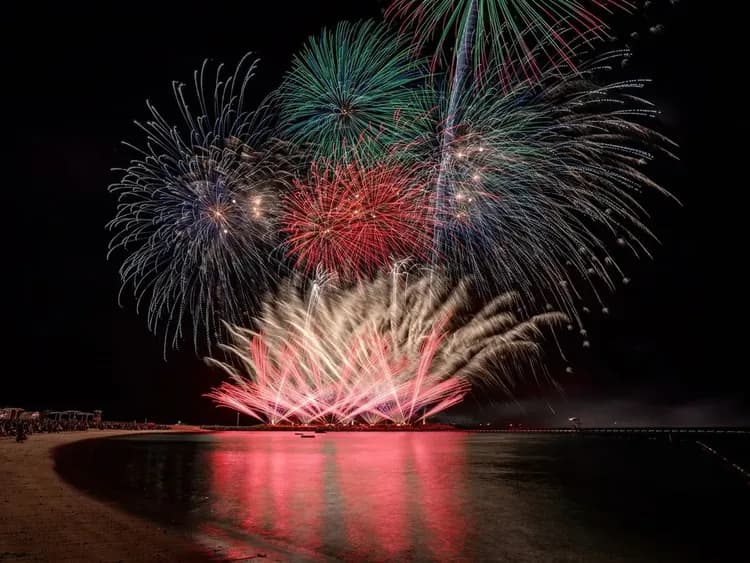 請盡情欣賞在翡翠海灘上空綻放的約10,000發煙火!