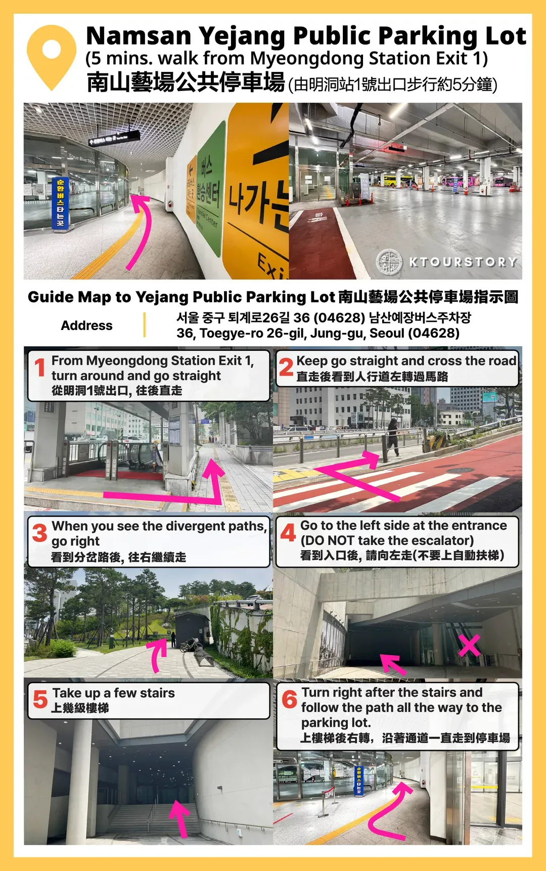 • 南山藝場公共停車場 (由明洞站1號出口步行約5分鐘)(查看地圖