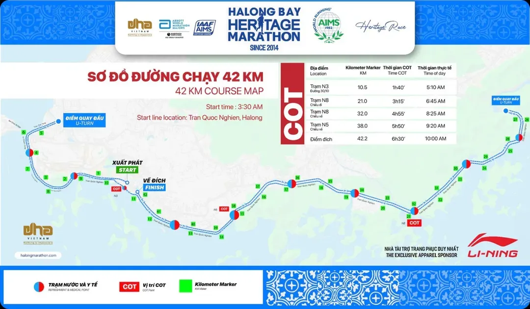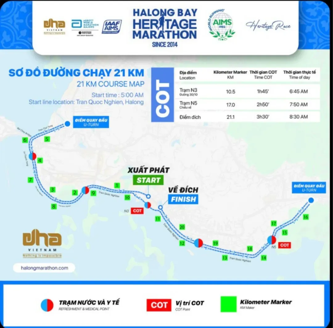- 賽事起/終點:廣寧省規劃展覽中心,下龍市,陳國義街 (The Quang Ninh Exhibition of Planning and Expo Center, Tran Quoc Nghien street, Ha Long city) 📢比賽開始前 30 分鐘到達起跑線。