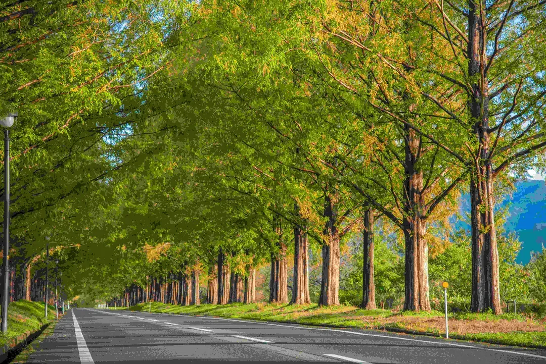 這條筆直的水杉大道綠意盎然,秋季轉金黃或紅褐色,景色極富詩意。無論漫步、騎行或拍照,都能被這片對稱樹陣圍繞,彷彿置身童話世界。