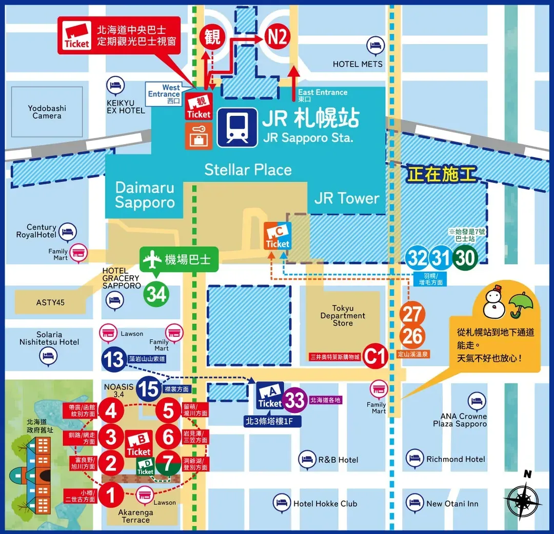 會面地點:札幌 JR 車站 北口路線巴士 3 號乘車處