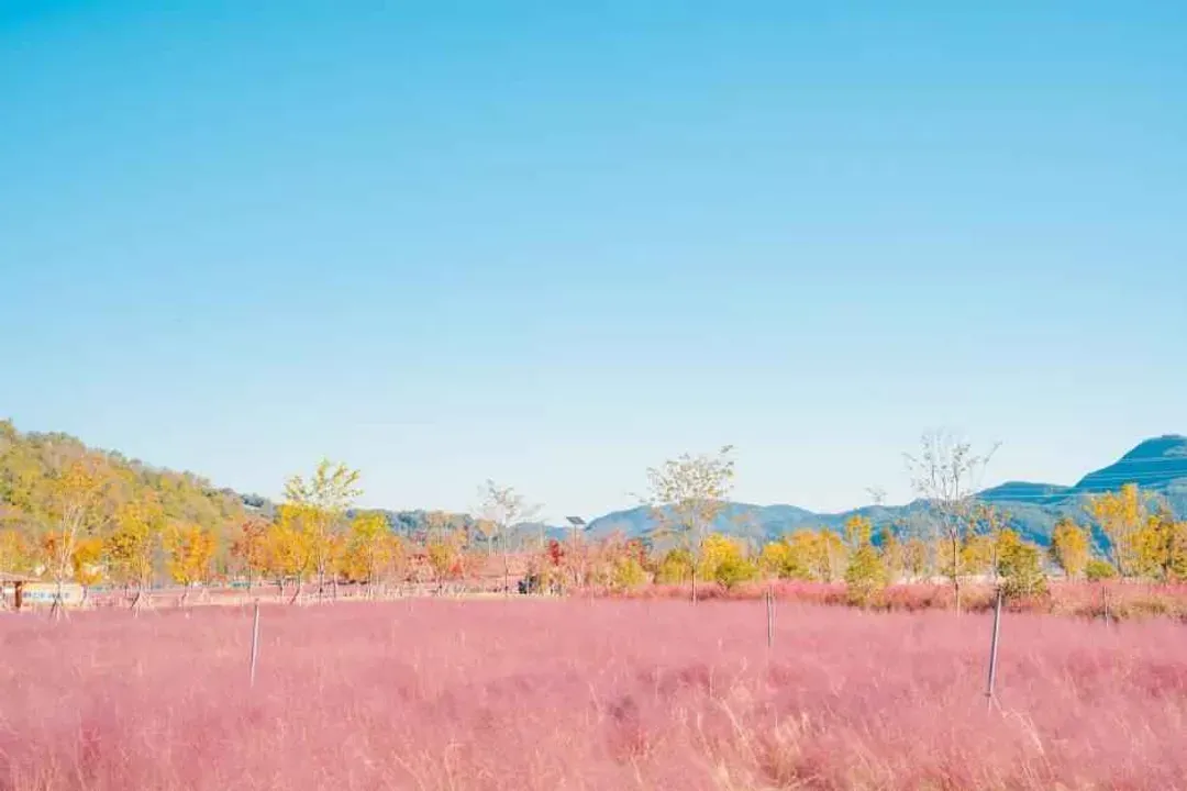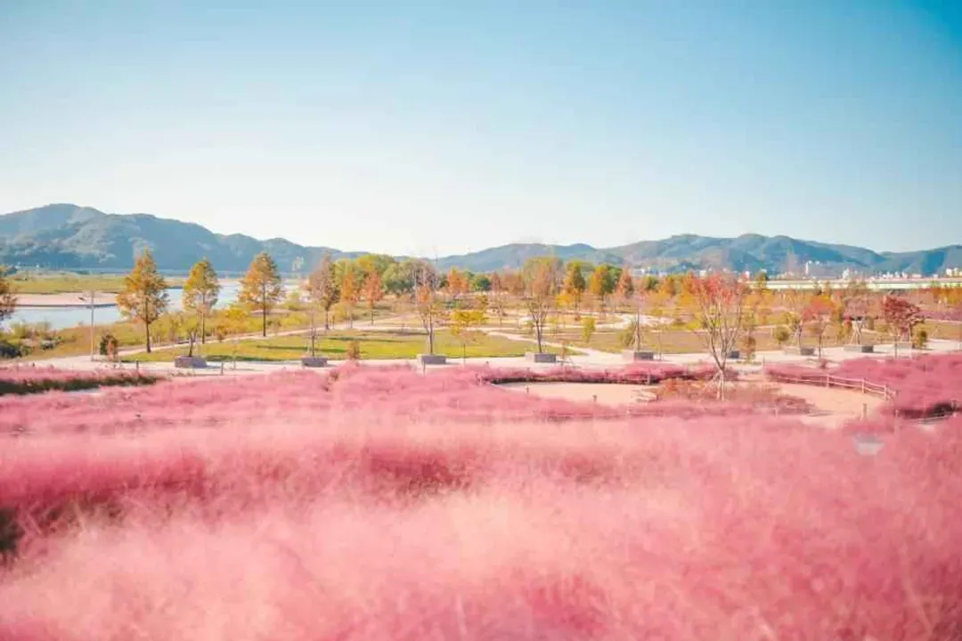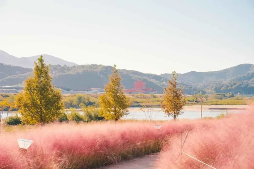 鄰近的陝川新邵陽體育公園則以粉黛亂子草花海爆紅,粉紅浪漫與螺旋步道相映,打造如夢似幻的打卡熱點!