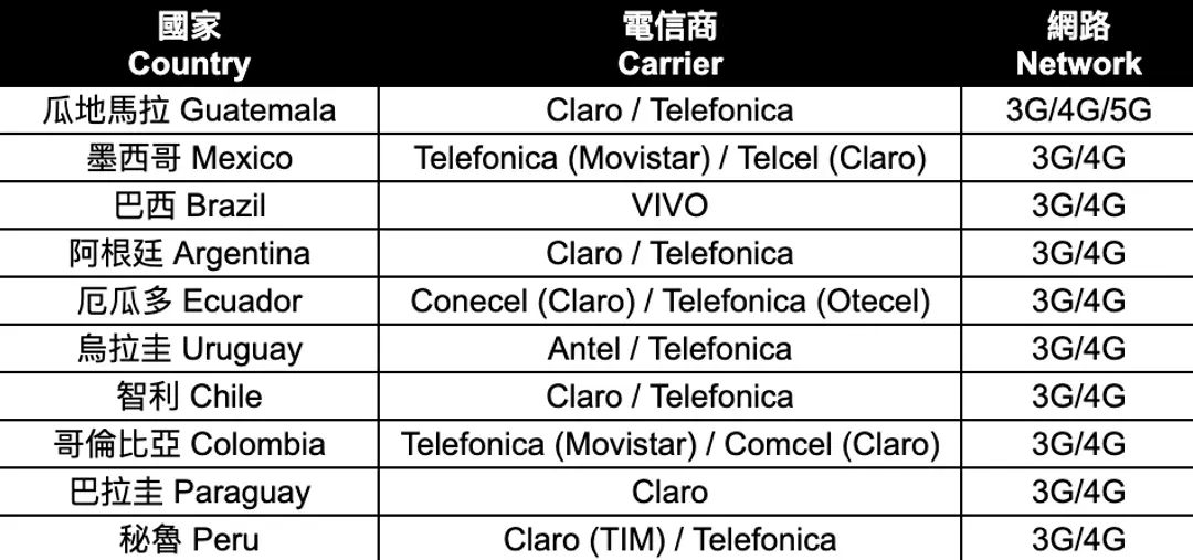 【10個適用國家】瓜地馬拉、墨西哥、巴西、阿根廷、厄瓜多、烏拉圭、智利、哥倫比亞、巴拉圭、秘魯