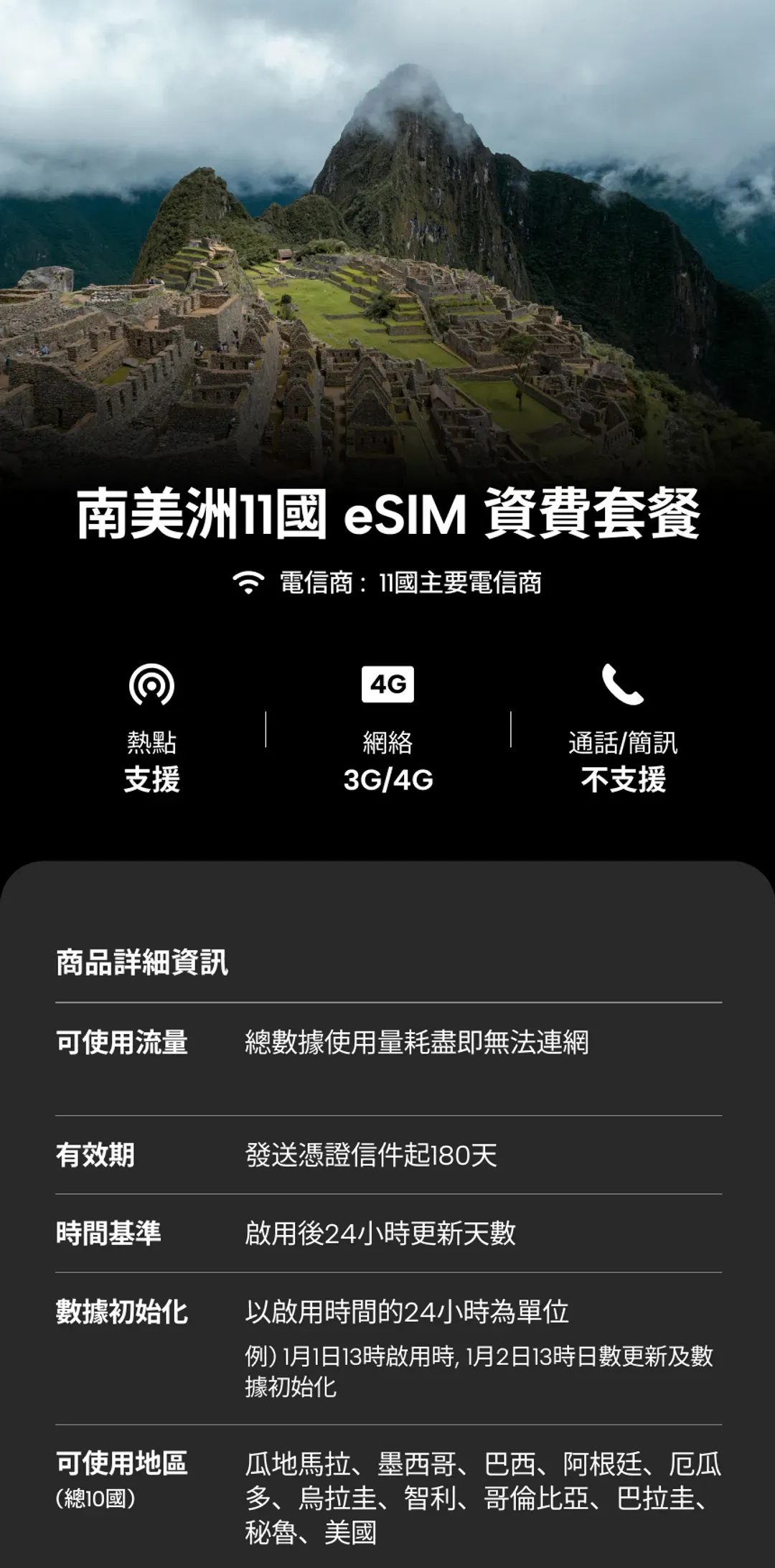 🌎 南美洲11國 eSIM 方案規格與預訂