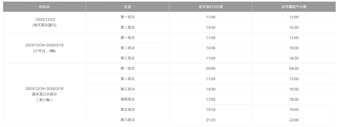 點我加購龍平度假村接駁巴士 (營運至2/28)