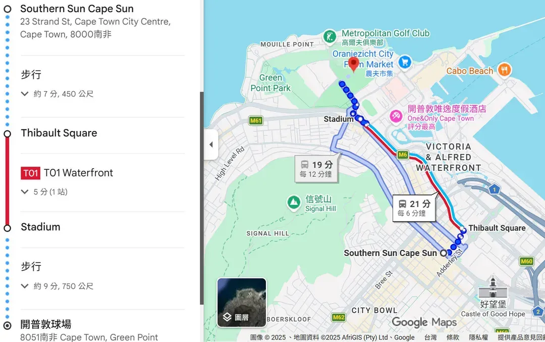 ■ 南太陽角飯店 (SOUTHERN SUN CAPE SUN) ↔️物資領取會場(DHL Stadium in Green Point, Cape Town 開普敦球場)