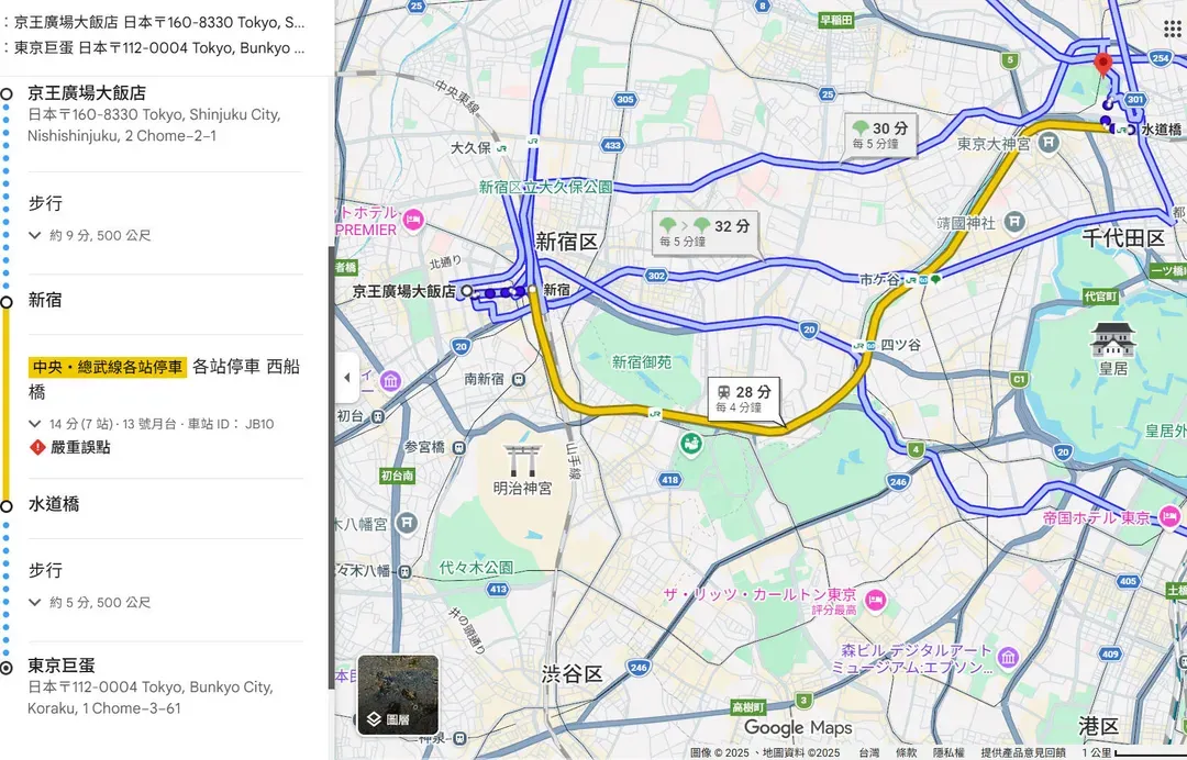 ■ 京王廣場飯店(KEIO PLAZA HOTEL TOKYO)↔️賽事會場:東京巨蛋