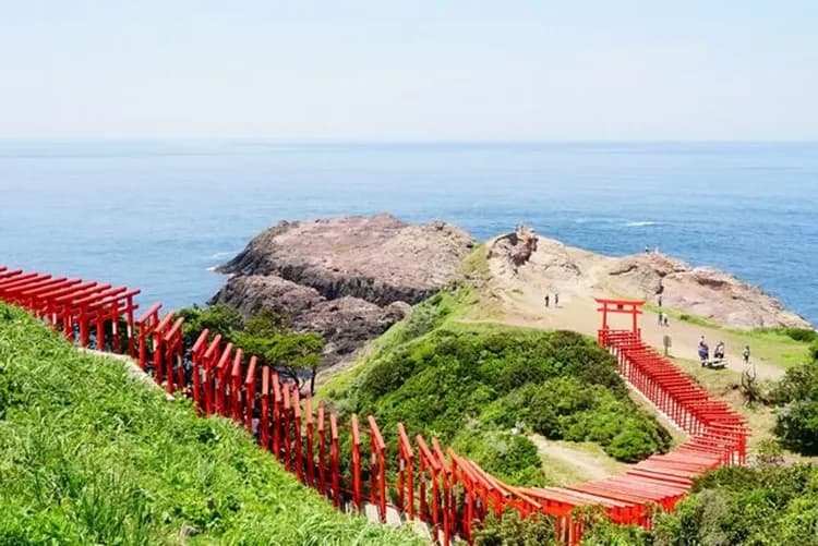 曾被美國 CNN 評選為「日本最美 31 處景點」之一,是山口縣極具人氣的絕景聖地。最令人印象深刻的,莫過於 123 座鮮紅色的鳥居沿著山坡蜿蜒排列,一路延伸至斷崖邊的蔚藍大海,紅色的鳥居、綠色的植被與藍色的海洋形成強烈而美麗的對比。此外,這裡還擁有號稱「日本最難投進」的香油錢箱,設置在離地 6 公尺高的鳥居上方,據說若能順利投進,願望便能成真。 (註:若遇神社關閉改往福德稻荷神社,該處同樣擁有壯觀的千本鳥居與俯瞰關門海峽的絕景。)