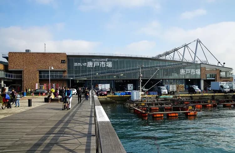唐戶市場 (Karato Market) 位於關門海峽對岸的山口縣下關市,從門司港搭乘渡輪約 5-10 分鐘即可抵達。這裡以新鮮海產聞名,更是河豚的主要產地。