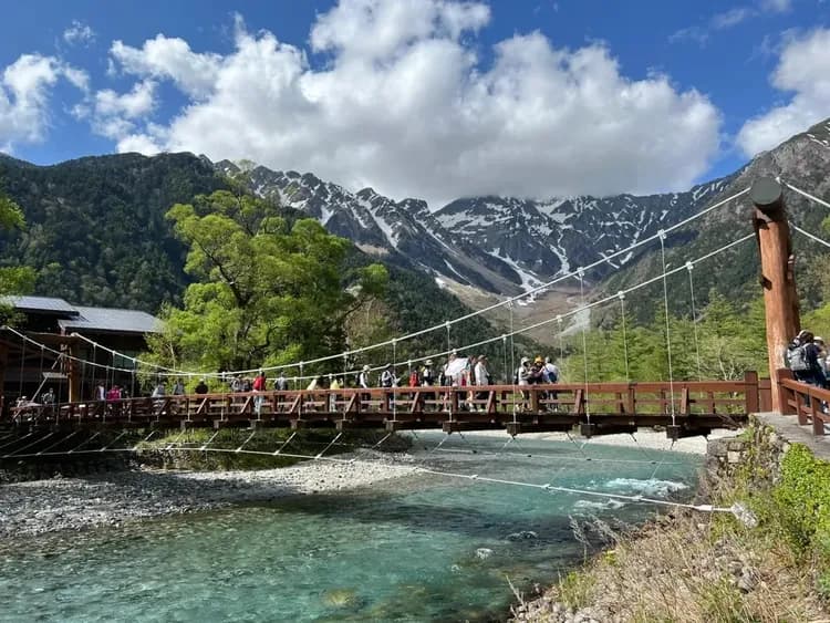 - 上高地:被譽為「日本九寨溝」,標高 1,500 公尺,是受保護的國家文化財。清澈的梓川與壯麗的穗高連峰構成如詩如畫的風景。