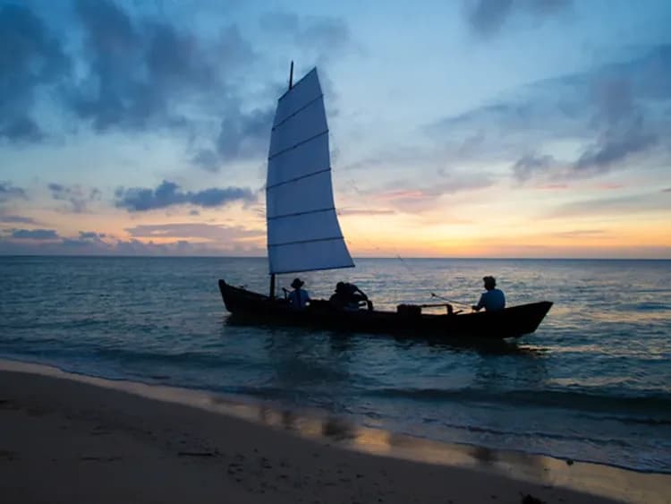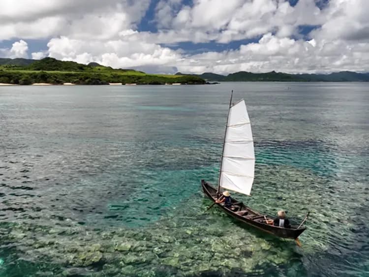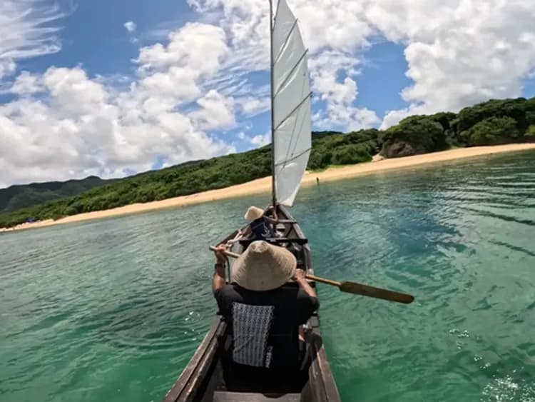 搭乘沖繩自古以來傳承的傳統木製帆船「鱶舟 (Sabani)」,在石垣島湛藍透明的海面上隨風馳騁。