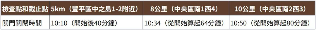 (4) 半馬的關門點(檢查站)與關閉時間設定如下: