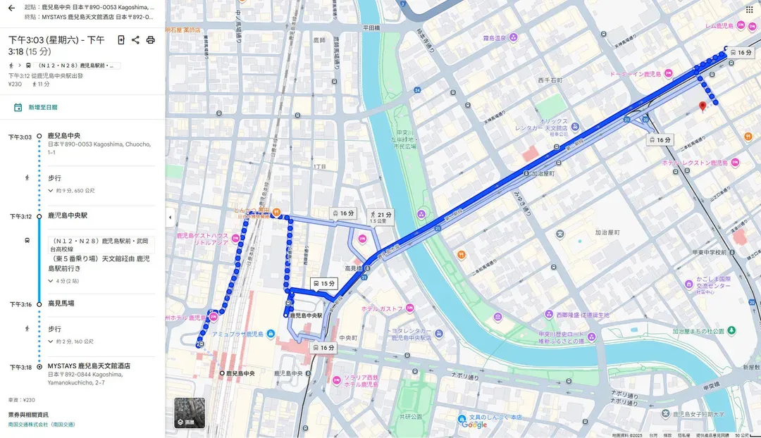 ■ 鹿兒島中央車站↔️MYSTAYS 鹿兒島天文館飯店(HOTEL MYSTAYS Kagoshima Tenmonkan)