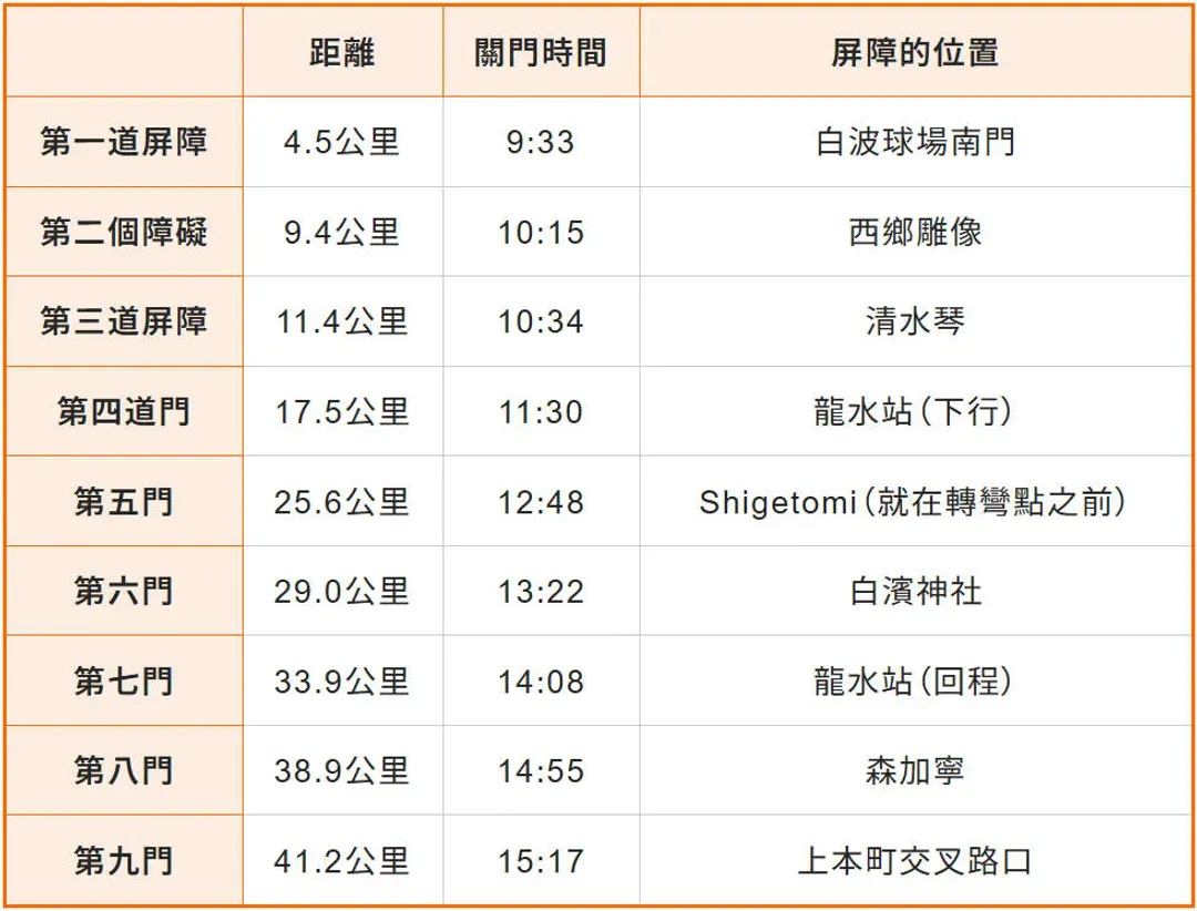 *由於官方測量尚未進行,檢查站的位置和時間可能會有所變化。