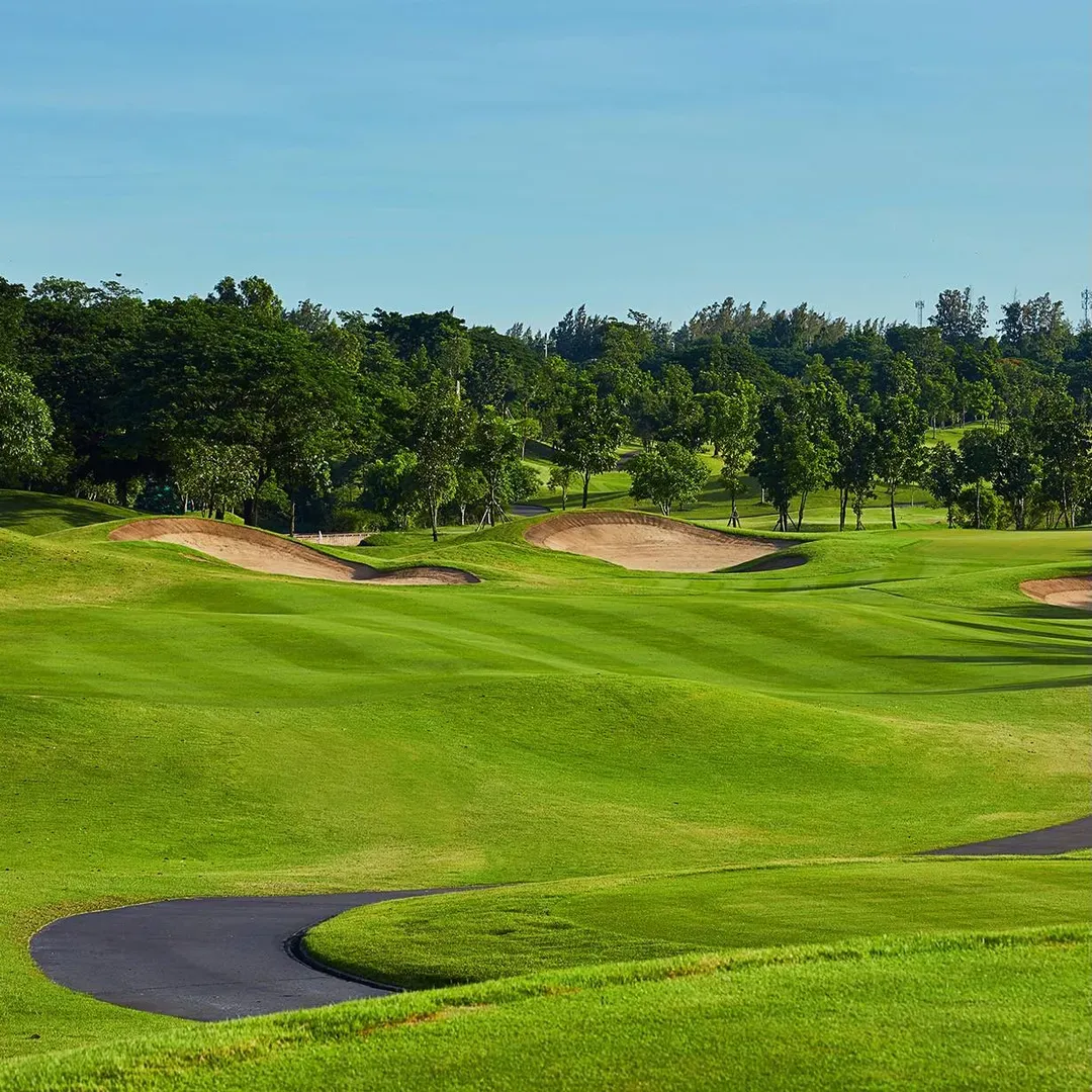景觀包括幾個大湖泊,這些湖泊經過疏浚,形成了環繞高爾夫球場並構成大部分球洞的山丘,是一座宏偉壯觀的高爾夫球場,獨特的「上坡和下谷」設計令高爾夫愛好者驚嘆不已!