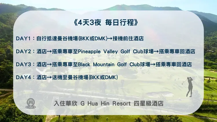 ▶ 參加【泰國華欣高爾夫4天2場】入住華欣市區四星級酒店、含交通接駁(四人成行)需要準備什麼?
