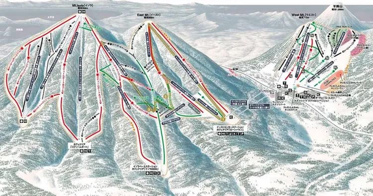坐落於西山、東山以及伊索拉山。度假村內的3大高峰正是留壽都樂趣的根源所在!每座山都有不同特色的地形,可展開豐富多樣的玩雪方式。