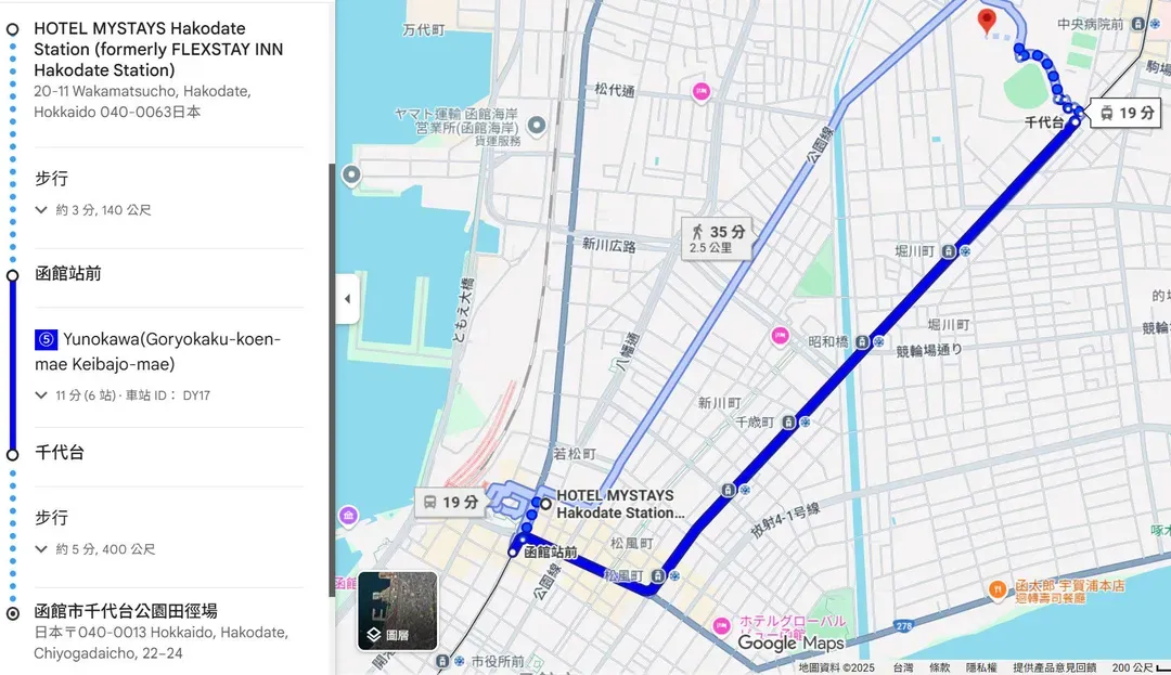 ■ MYSTAYS函館五稜郭飯店↔️比賽會場:千代台公園田徑場 (千代台公園陸上競技場)