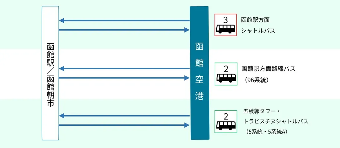 ① 機場循環巴士(Hakodate Airport → Hakodate Station)在「函館站前」下車,步行約3分鐘(220公尺),點擊查看機場接駁巴士資訊