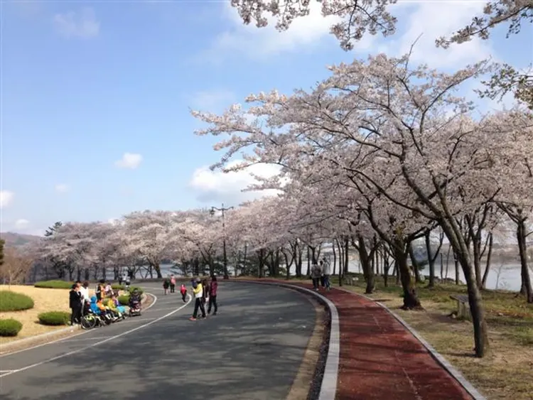6.最美櫻花隧道三樂生態公園(賞櫻):曾被選為《韓國最美的100條道路》,佔地達1萬7千坪,狹長的步道邊,每年春天都會開滿櫻花,兩側共1,200棟的櫻花林形成了壯觀的《櫻花隧道》。