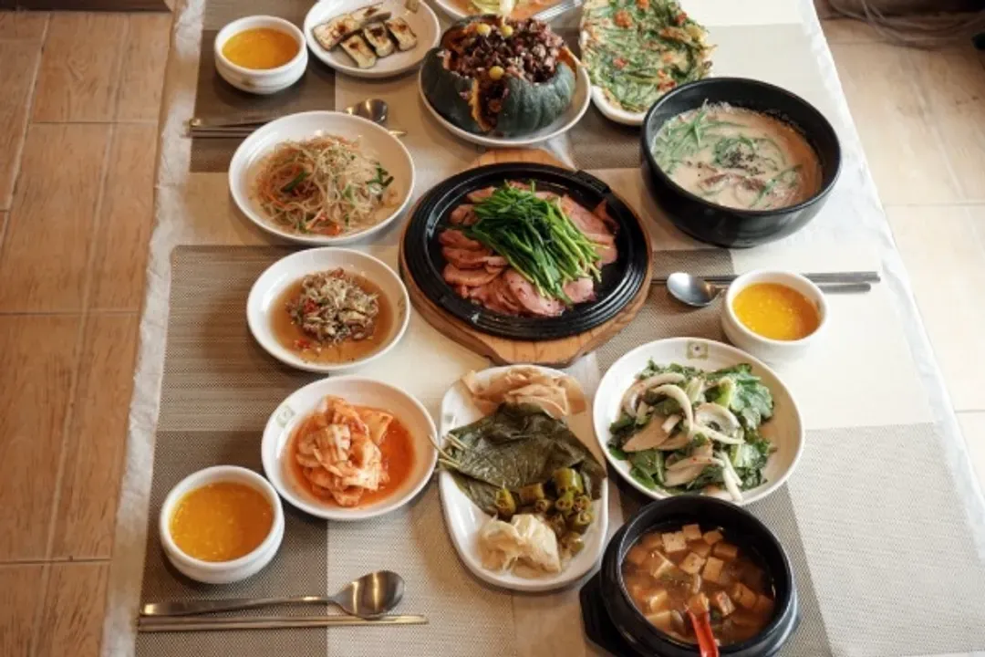 韓國人主食和台灣人一樣,以米飯為主,常見的菜餚以肉、魚、豆腐、蔬菜等燉煮的火鍋,韓國特有的營養豐富的辛奇及以韓國式的調味佐料拌製的各種小菜,此外又加有多種不同風味的調味品,一般來說為辛辣口味。雖然同為亞洲國家,但是風俗習慣與禮節依然有所不同。