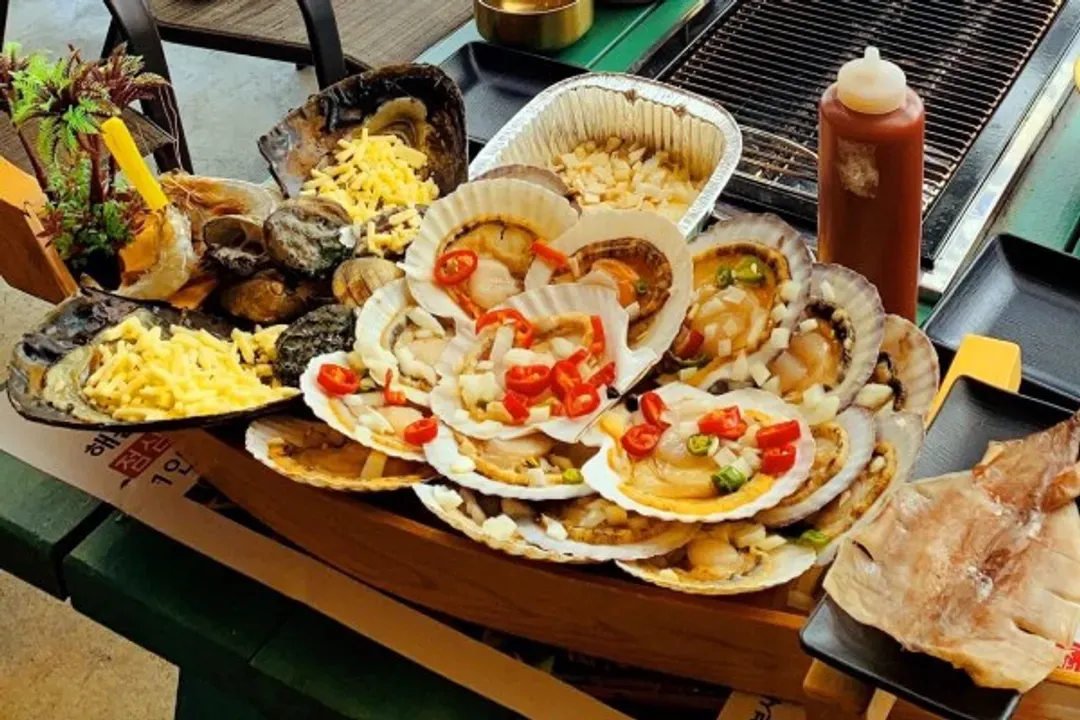 海鮮燒烤餐+海鮮鍋+起司+黑輪(火烤兩吃)。
