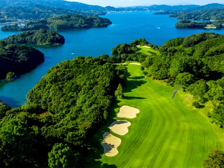 可以眺望四季各異的大村灣,是全國第一的海濱球場之一! 如包含2010年日本職業高爾夫錦標賽日清杯麵杯和2015年第48屆日本女子職業高爾夫錦標賽柯尼卡美能達杯等的大型賽事,職業賽事都在此舉行。球場充分利用了半島的地形,將刺激高爾夫球手的感官。其中,前九洞的3號洞是「跨越大海」的著名球洞,據說是日本最好的球洞之一。